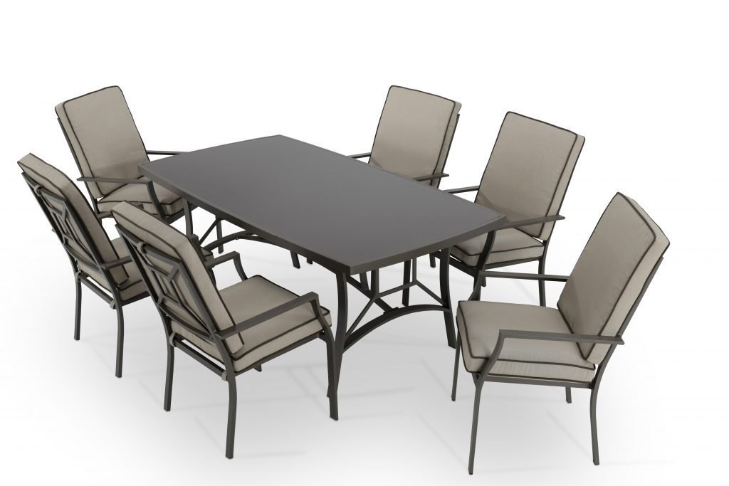 Its elegant lines and beige cushions with brown trim give that style you wanted in your garden. The cushions have Velcro to prevent them from slipping and falling off, and are washable and easily removable.